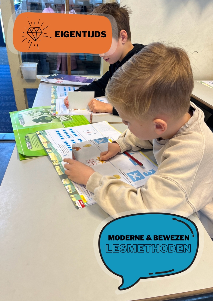 - Voor de basisvakken rekenen, lezen, taal en spelling maken we gebruik van moderne lesmethoden. We beschikken over voldoende ICT-middelen die we ter ondersteuning van deze vakken inzetten.